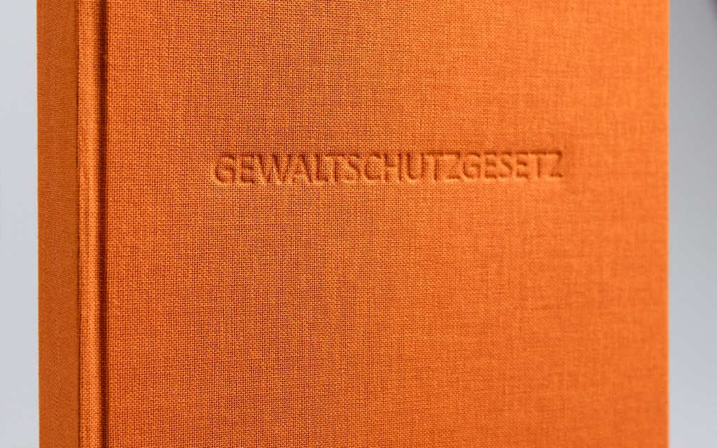 Das Gewaltschutzgesetz soll lang-, mittel- und kurzfristig Betroffene unterstützen. Deshalb enthält es neben dem Gesetz in einfacher Sprache zusätzlich ein Mikrofon zur Beweissicherung und ist in Metall eingebunden.